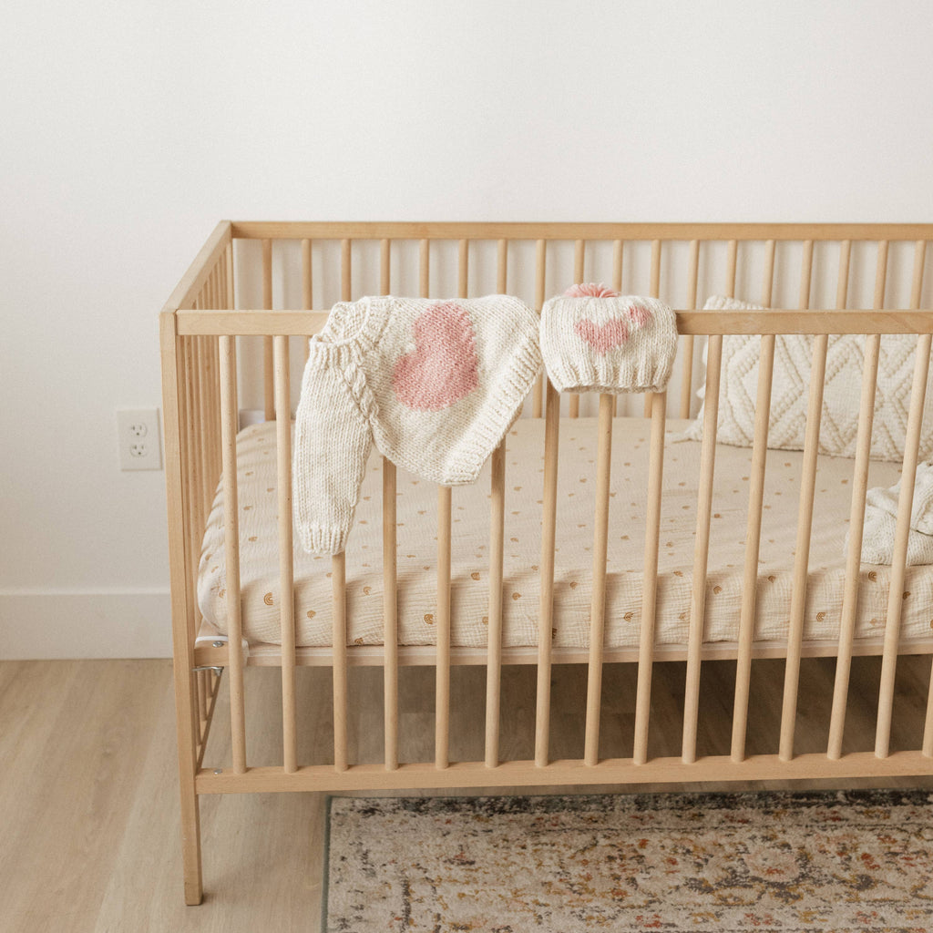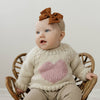 Celebrate love with our Sweetheart Sweater. Hand-knit in chunky yarn, this crew neck sweater in Natural has a Heart knit in Rosy Pink yarn. Hand-knit, it is soft and warm. This is such a great girls' sweater and makes an adorable Valentine's Day gift. Make sure you buy the matching Sweetheart Beanie Hat to go with this. Our sweaters are partially knit from recycled, sustainable Polyester yarn made from plastic bottles. We are on a mission to help reduce the world's plastic pollution problem ♻• 60% Acrylic, 40% Recycled Polyester • Hand Wash