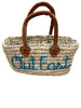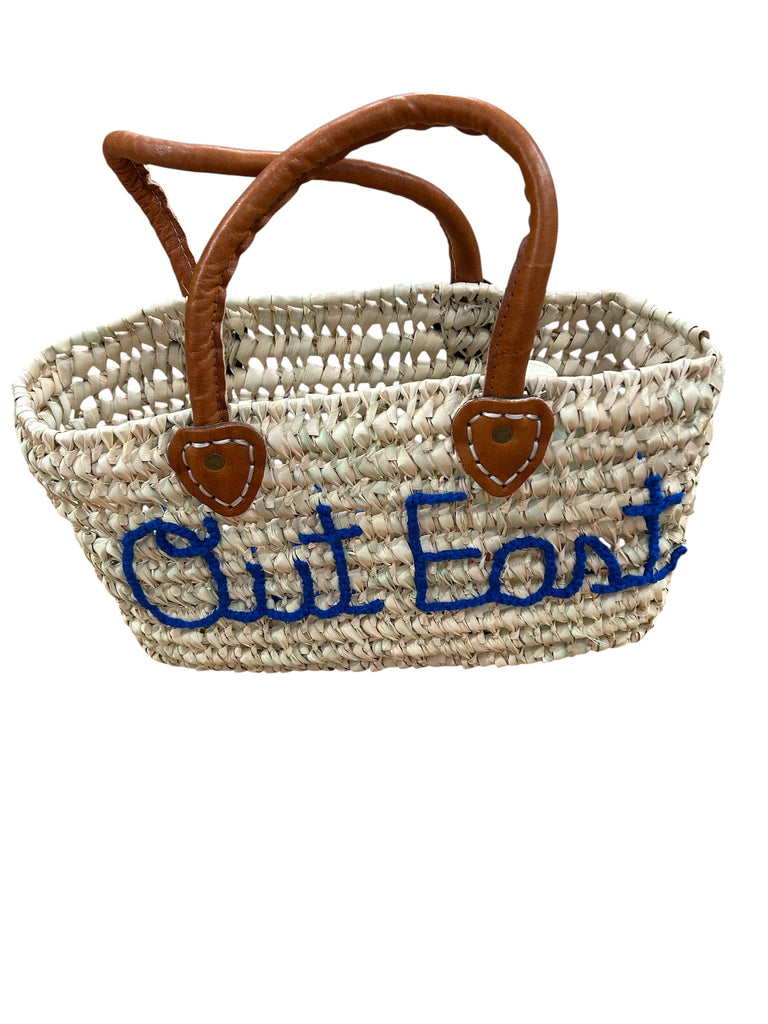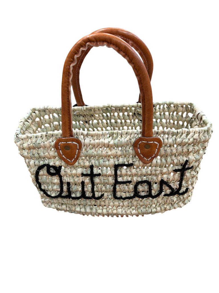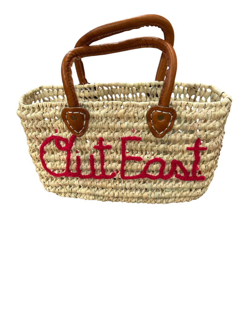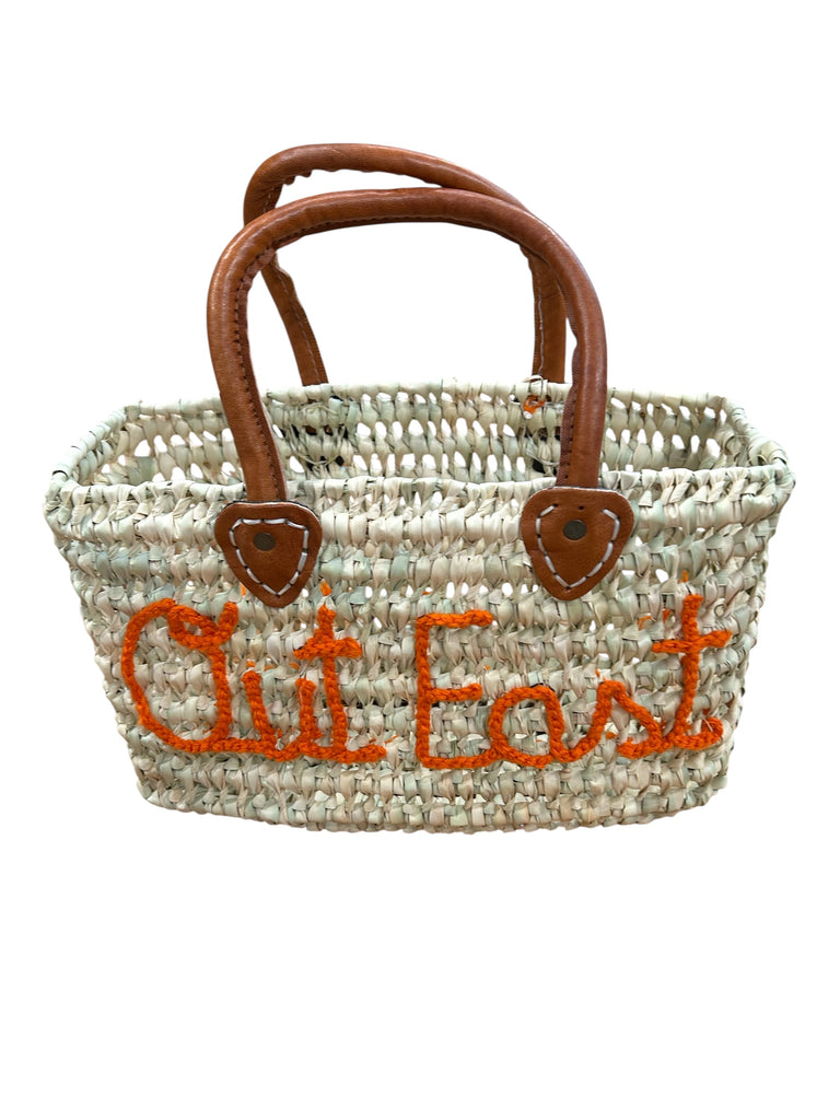 Handcrafted from durable and eco-friendly palm leaves, this personalized Out East handbag is both stylish and practical. It features a dark tan premium leather handles for a sturdy grip and a sophisticated appearance. Ideal for beach outings, trips to the market, or casual daily use, this bag combines natural beauty with functionality. Lightweight, spacious, and versatile, this palm leaf tote is a must-have accessory for any occasion.