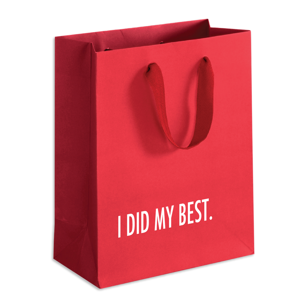 Bag that gift you aren’t quite sure about with this 10” x 8” x 4” kraft paper gift bag, featuring a cloth handle (no strings attached!)