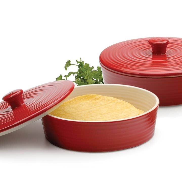 Holds up to twenty four 8-inch tortillas, measures 8.5-inches in diameter by 3-inches tall.