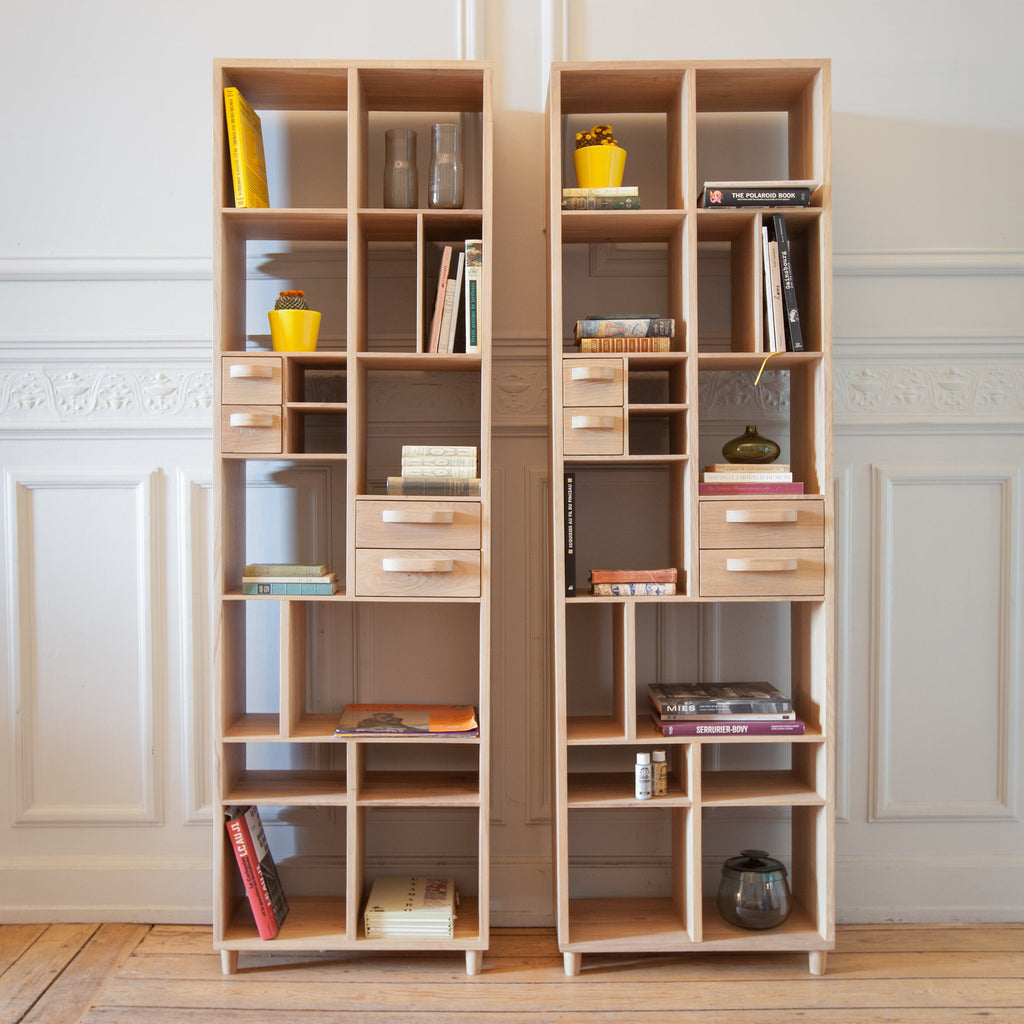 Playful yet subtle, the 60s-inspired Pirouette bookrack is a functional storage space that doubles as a statement piece. This rack is made from solid oak and features 4 drawers.