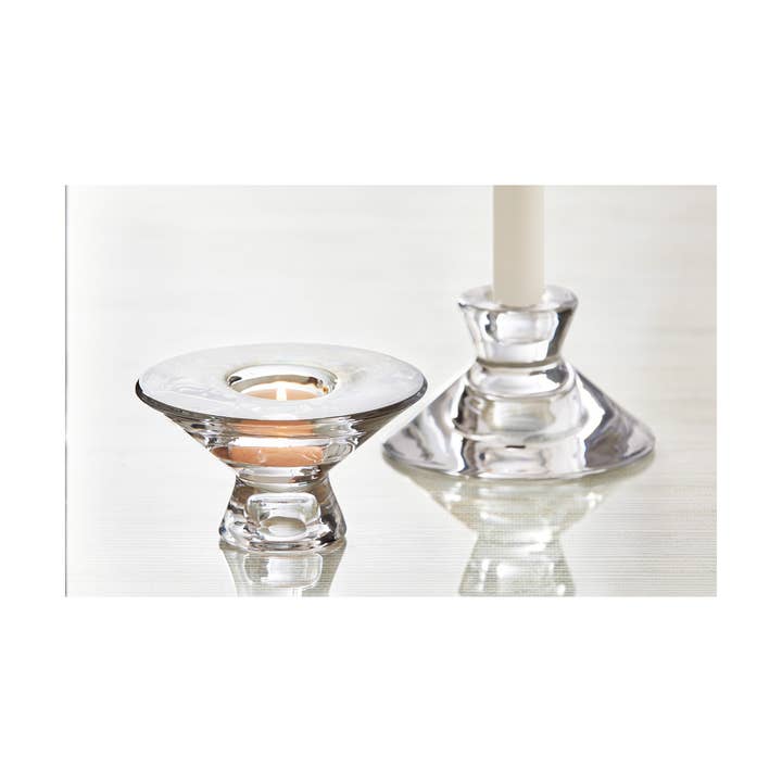 double duty design. reversible candle holder functions as a tealight candle holder and a straight or taper candle holder! this multipurpose, innovative glass candle holder adds form and function to your home decor. versatile and stylish for any occasion. holds a standard tealight candle or a standard size straight or taper candle.