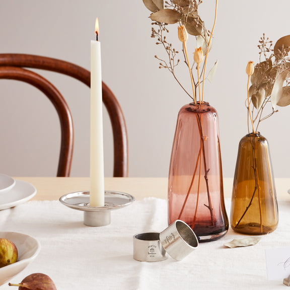 There's nothing like the soft, warm light of candles to make your home feel cozy and elegant. Our pewter candlestick holder with bobeche gently reflects the glow of candlelight and prevents wax from dripping on your table. The clean modern lines of these candlesticks can effortlessly update traditional settings, and harmonize beautifully in casual or formal occasions. They're form meets function at its best.