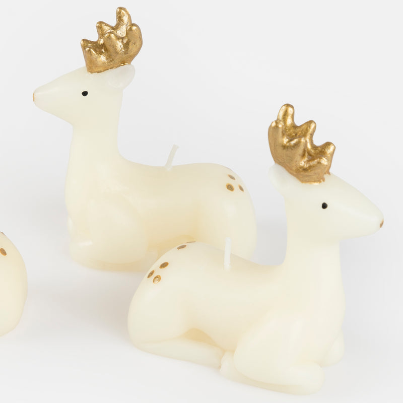 This trio of remarkable reindeer candles, with shiny gold ink antlers and spots, will look amazing at your festive celebrations. They're perfect to place on your party table or mantel (and, if you don't light them, you can use them year after year as decorations). A wonderful present for someone who loves special candles, or as a host gift.
