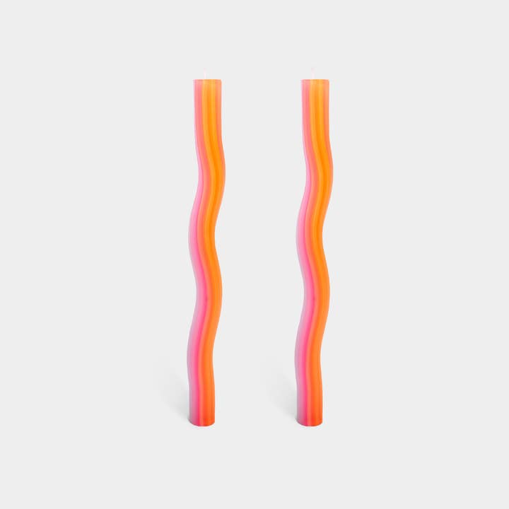 The Wiggle Taper Candles, designed by Lex Pott, combine a functional dining candle with fun, joy and experiment. Bright color combinations are squeezed together in an undulating shape to create a sense of motion.