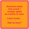 Coasters are 4”x 4” resin with cork backing and round corners.