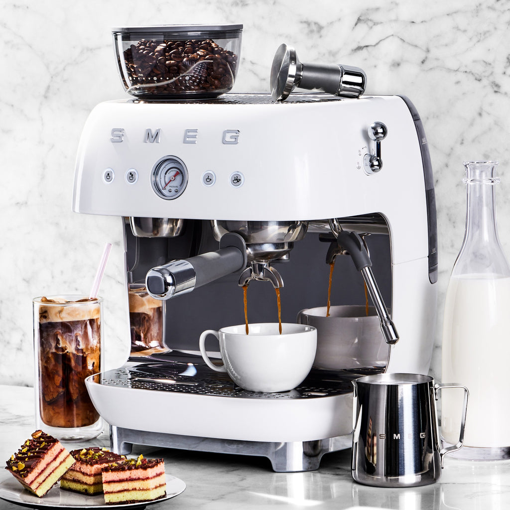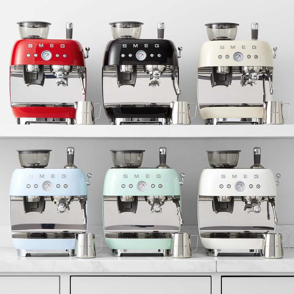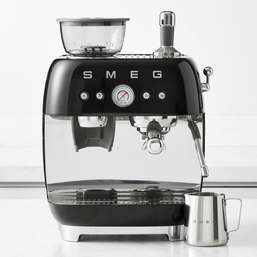 Combining midcentury aesthetics with modern conveniences, this sleek machine delivers authentic espresso in iconic Italian style. It features a conical grinder with a stainless-steel burr and dual spout that offers the option to brew and grind one or two cups of coffee. It's also equipped with an instant steam wand for making velvety cappuccinos. The machine is made by SMEG, an Italian-based company known for retro-inspired appliances created in collaboration with some of the world's top architects.
