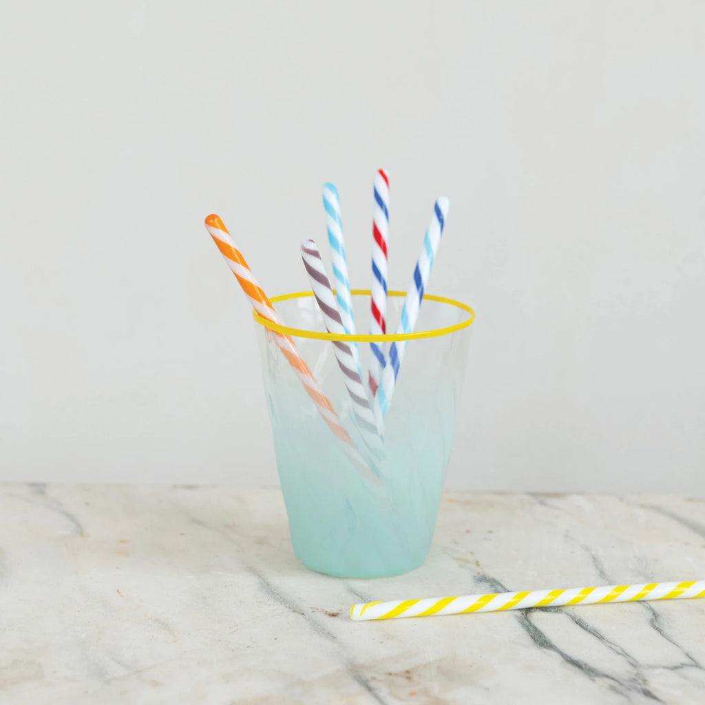 Hand-Blown Glass Cocktail Stir Sticks with Stripes, Boxed Set of 6