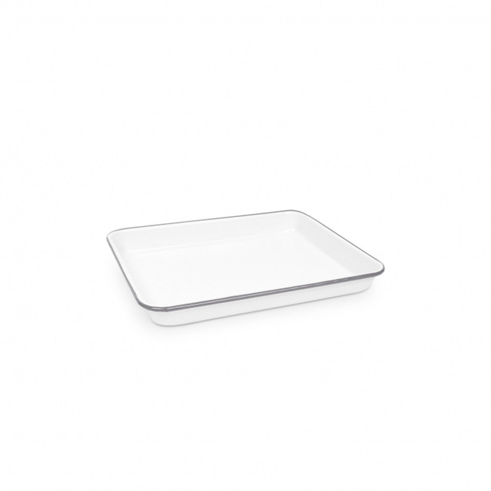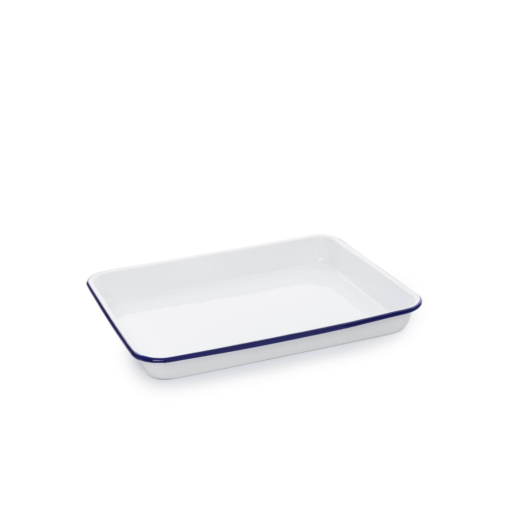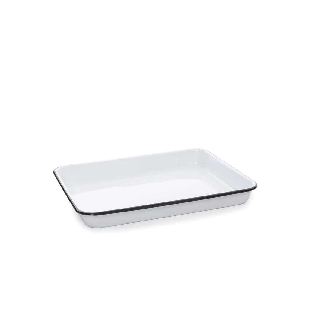 Our enamel Small Rectangle Tray can be used in the kitchen or in your home as decor. Roast some whole heads of garlic or use it to organize your keys, wallet and other essentials. This little tray is a jack-of-all trades.