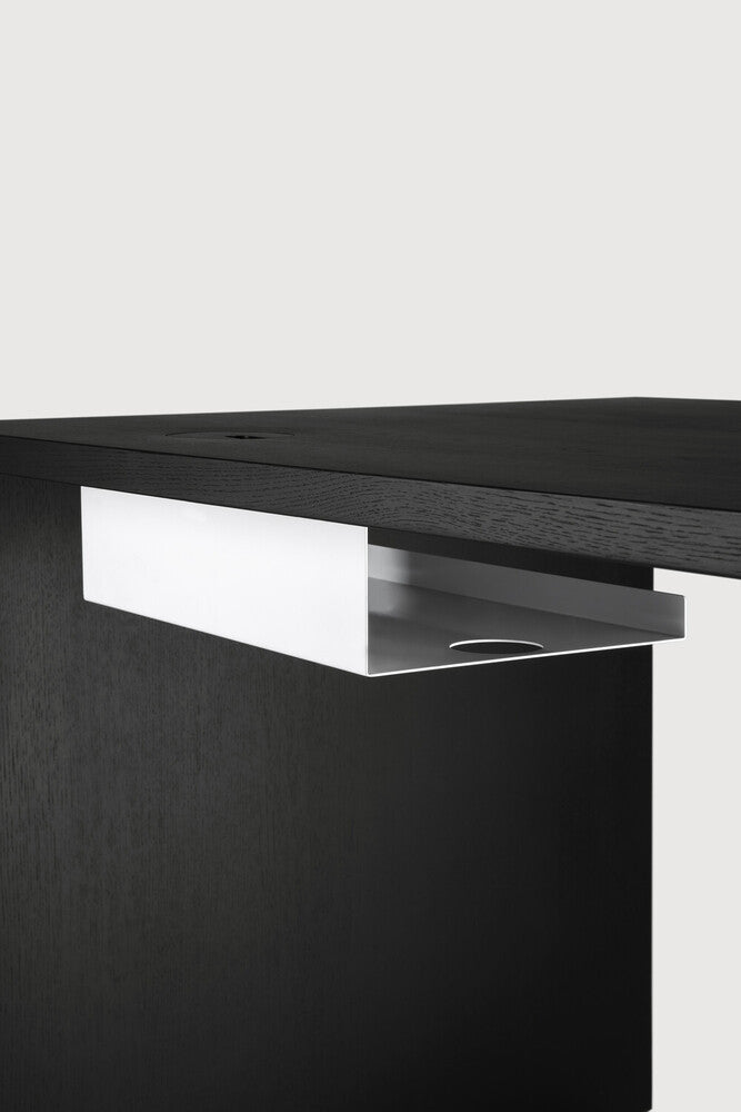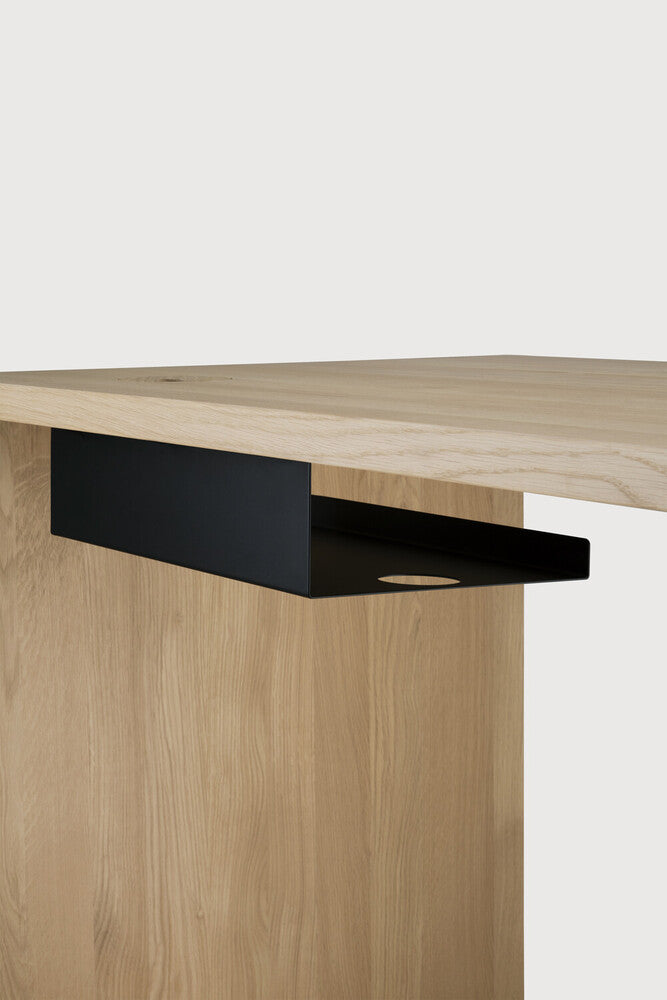 Organise and conceal under-desk cables with the Metal cable tray. Designed to fit Ethnicraft desks, the tray holds external sockets, control boxes and cables for a clean, practical solution to the everyday office connection realities. Easily fitted using pre-drilled holes.