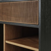 Made from natural solid teak and black-tainted solid teak with a varnish finish.