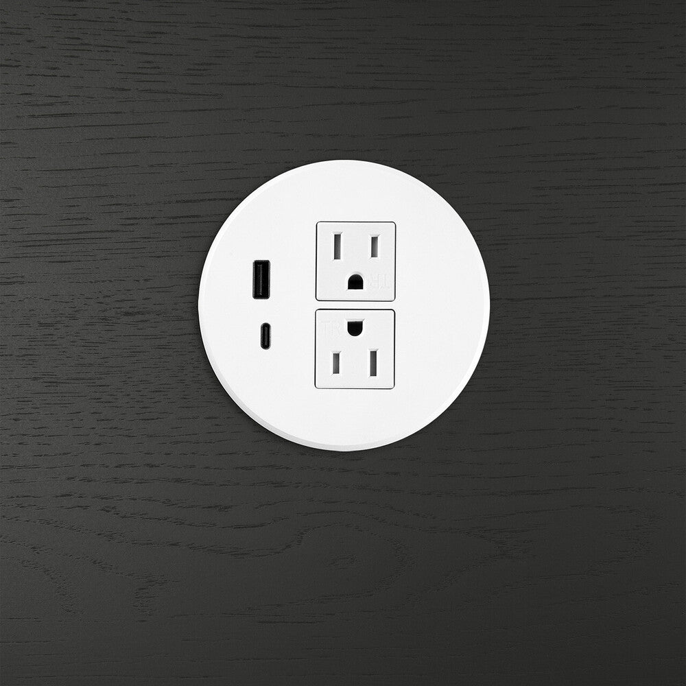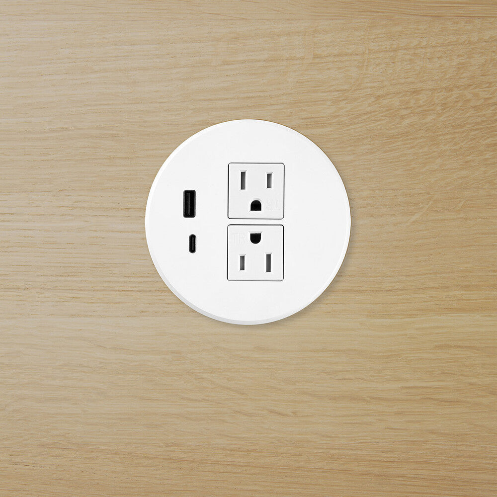 The Power Circle is thoughtfully designed to integrate seamlessly with the cable management systems of Ethnicraft desks, combining functionality with minimalist aesthetics. Offering the convenience of power supply alongside USB (A & C) charging ports, it ensures a clutter-free workspace. With multiple country outlet options, the Power Circle adapts to global needs while maintaining a clean and modern desktop design.