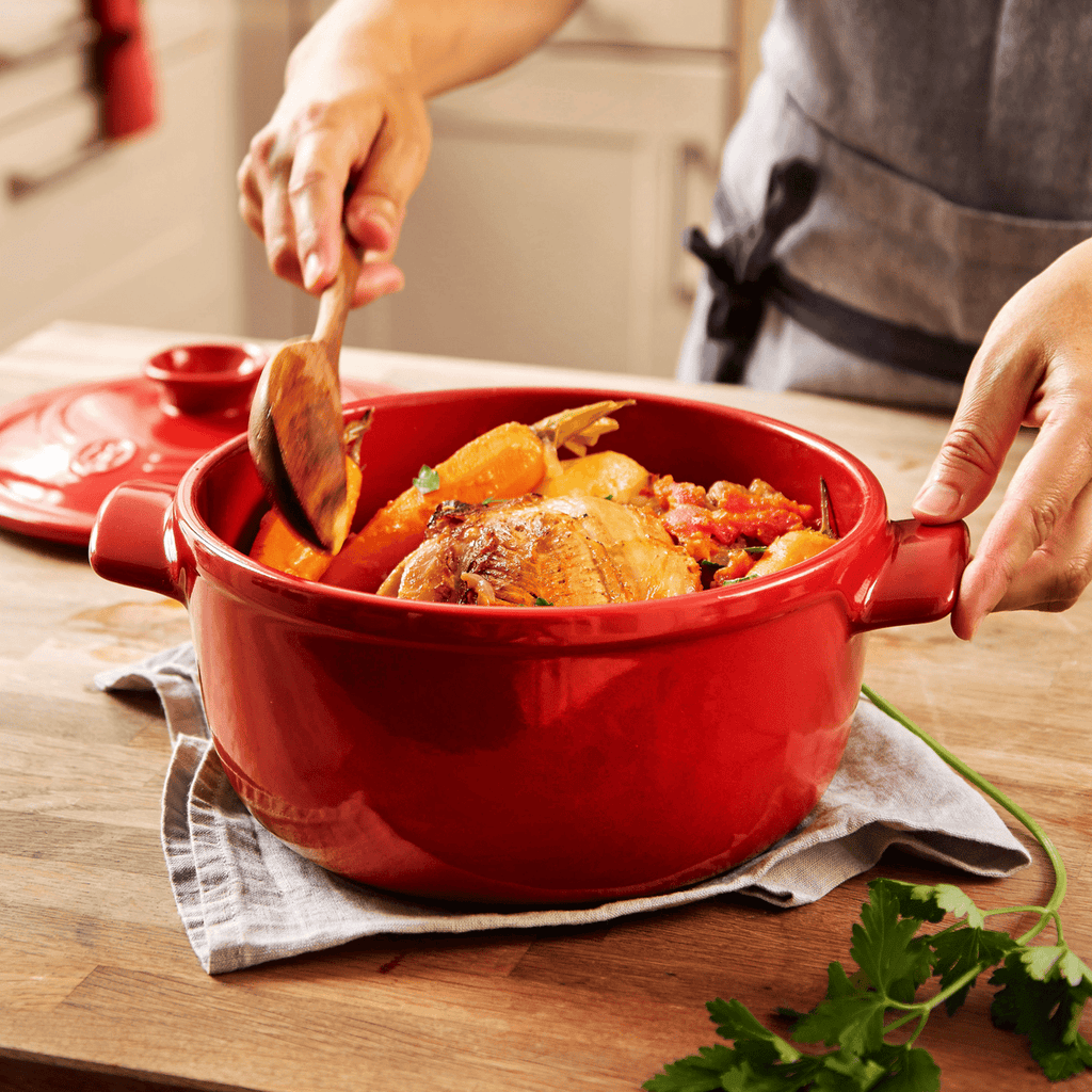 Discover the taste of healthy cooking, lovingly prepared in an entirely natural cooking utensil. This is the role of Emile Henry's Flame® ceramic. Created for use directly on the heat (gas, electricity or halogen*),(except the Baking Stone & Pizza Stone), our Flame® products can also be used in the oven or microwave.