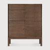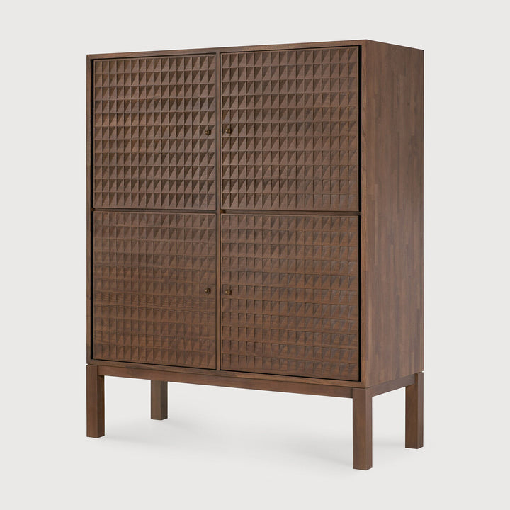 Sono, where antique-inspired craftsmanship meets modern elegance. This refined statement collection features meticulously hand-carved panels that provide functional storage beneath a timeless aesthetic. The delicate casted brass handles add an extra layer of sophistication, making each piece a stunning addition to any room. Perfectly balancing style and practicality, the Sono collection enhances your décor with its exquisite detailing while offering ample storage to keep your space organized and elegant.Features four doors and adjustable internal shelves.