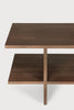 Made from brown-tainted solid FSC-certified teak with a varnish finish or from solid oak with a hardwax oil finish.