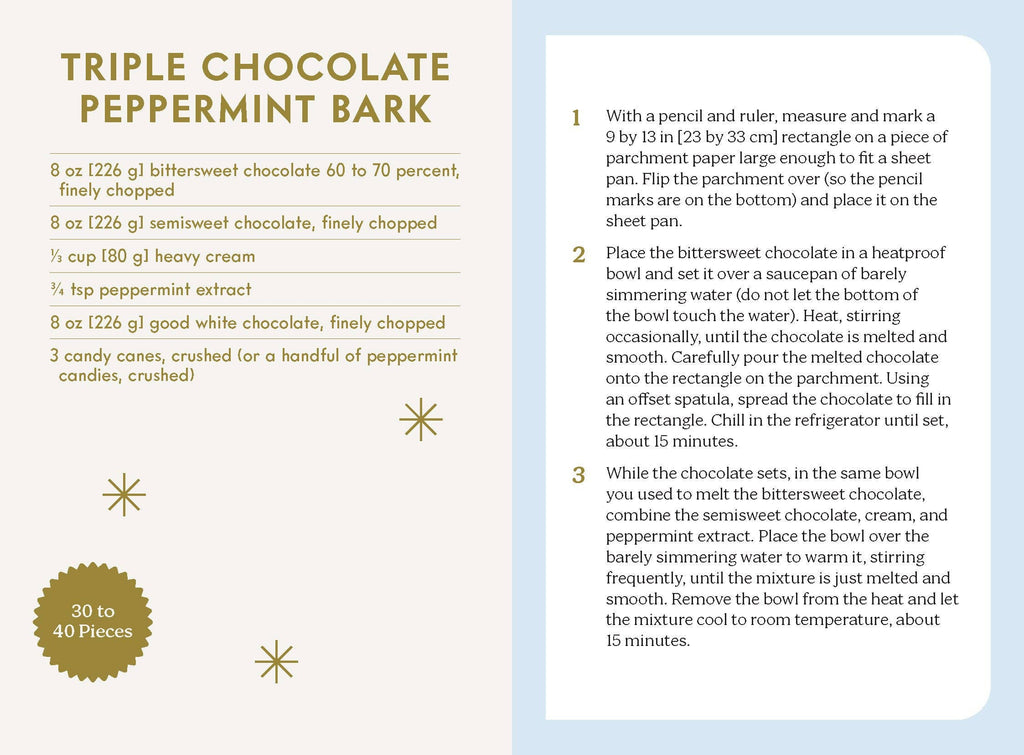 Ready to celebrate the most delicious time of year? This deck is your go-to guide for holiday brunches, seasonal parties, cookie swaps, showstopping desserts, and incredible edible gifts for family and friends. Tucked into a beautifully designed portable box, each recipe card features a full-color photo and easy-to-follow instructions for seasonal delights and creative riffs on classic bakes for Christmas, Hanukkah, New Year’s Day, and beyond, including: