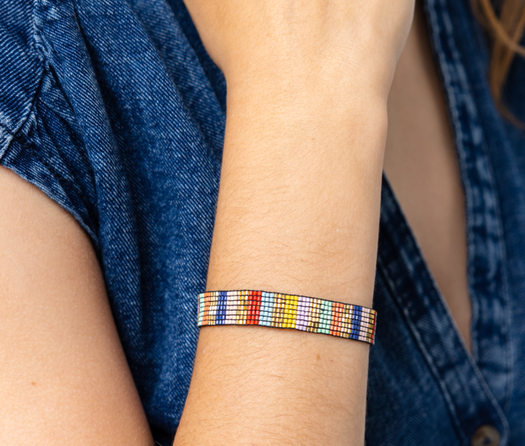 Handmade by skilled artisans in India. Hypoallergenic nickel + lead-free brass hardware. Human hands make these accessories. A slight variation in size and color is considered part of the beauty of these one-of-a-kind pieces. To extend the life of your accessories, store them in a dry place while swimming, showering, or working out.