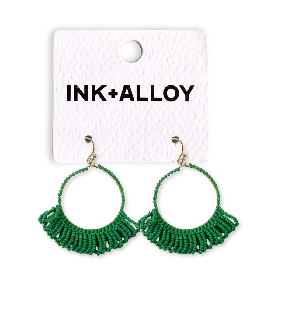 Kendra Fringe Hoop Seed Bead Earring - Kelly Green