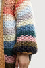Our Rainbow Knitted Cardigan is lightweight, soft, and keeps you warm. The oversized, knitted cardigan exhibits chunky knit sleeves and vibrant rainbow stripes that are guaranteed to brighten up your autumn wardrobe. Pair with black pants or leggings and a light-colored top for an outstanding autumn outfit.