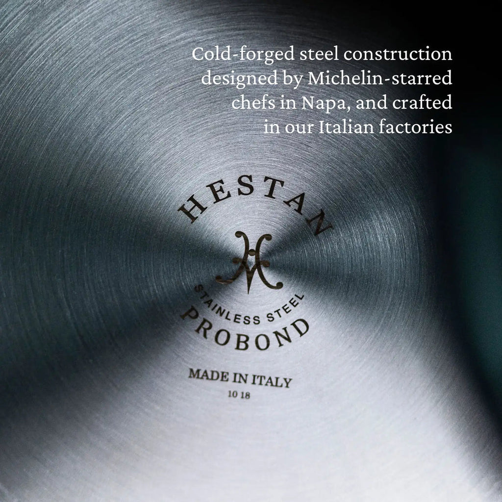 Push culinary boundaries with cookware innovation by equipping the kitchen with a Hestan ProBond Stainless Steel 3.5-Quart TITUM® Nonstick Sauté Pan with Lid. This medium-sized ProBond Professional Clad Stainless Steel sauté is handcrafted in Italy and features a tri-ply body with a responsive pure aluminum core for optimum performance, maximum durability, and fast, even heat distribution.