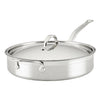 Finished with Hestan,s exclusive TITUM® nonstick system, this high performance sauté pan features a 5-layer system consisting of 3 layers of premium nonstick reinforced with diamond particles and anchored to the pan with durable titanium plasma technology. Ideal for a wide range of recipes, the sauté is quick to heat, ideally weighted, and provides a 20% larger cooking surface than traditional pans its size. The ergonomic handle is secured with flush rivets to provide a firm, comfortable hold when cooking or serving, a matching stainless steel lid seals in heat and incredible flavor, and the sauté pan is dishwasher safe for a quick cleanup and oven safe to 500°F for stove to oven cooking.