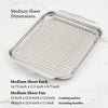 12" x 15" Medium Sheet Pan and Rack is crafted from durable, warp-resistant and dishwasher safe stainless steel. The tri-ply clad construction ensures even heat for perfect browning and roasting, with easy-to-grip handles.
