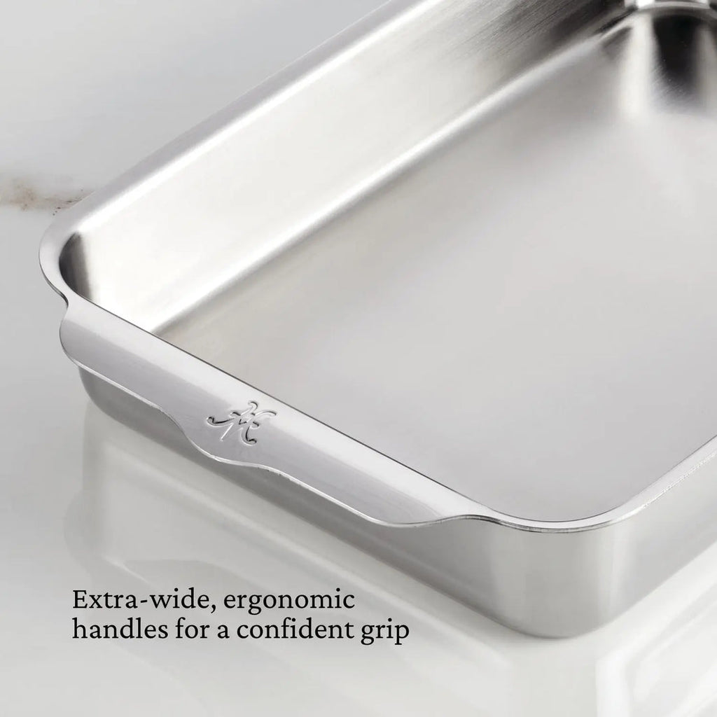 INCOMPARABLE BEAUTY - Ovenware set boasts a brushed stainless steel baking surface and polished exterior that brings a sleek look to the modern kitchen design