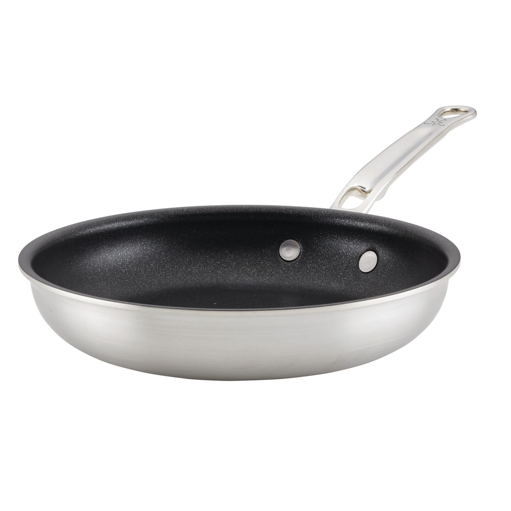 FLUSH RIVETS - Designed for the culinary creative, this sauté pan features flush rivets, making it easy to clean by preventing food build-up, while being ideal for stacking and nesting