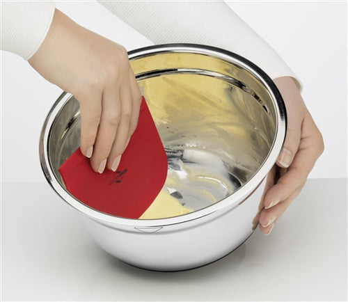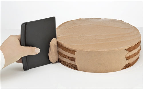The white dough cutter with a stainless steel ruler helps you to accurately portion the exact dough quality so that every slice will bake evenly and of uniform size. This is made of BPA free plastic and stainless steel. The red, softer edge with a rounded scraper leaves nothing in the mixing bowl and distributes your dough evenly in the pan while the black, straight-edge spreader evenly spreads layers and frosting (also made of BPA free plastic)
