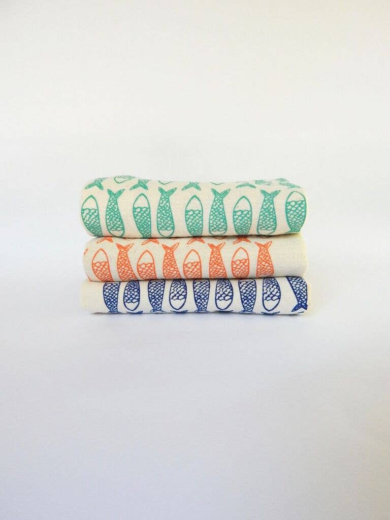 These are super soft and absorbent, long lasting, and a favorite kitchen companion. Handprinted with our fish illustration in our studio in Asheville, North Carolina using water based, environmentally friendly, non toxic, and permanent inks.