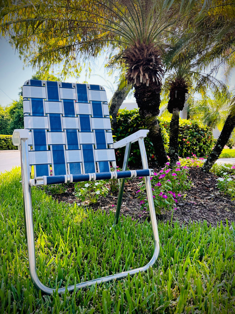 Introduce your customers to our newest addition—the stunning St Augustine Chair. This chair is quickly becoming a favorite. The deep blues and whites interplay beautifully, creating a chair that is not only comfortable but also visually appealing.