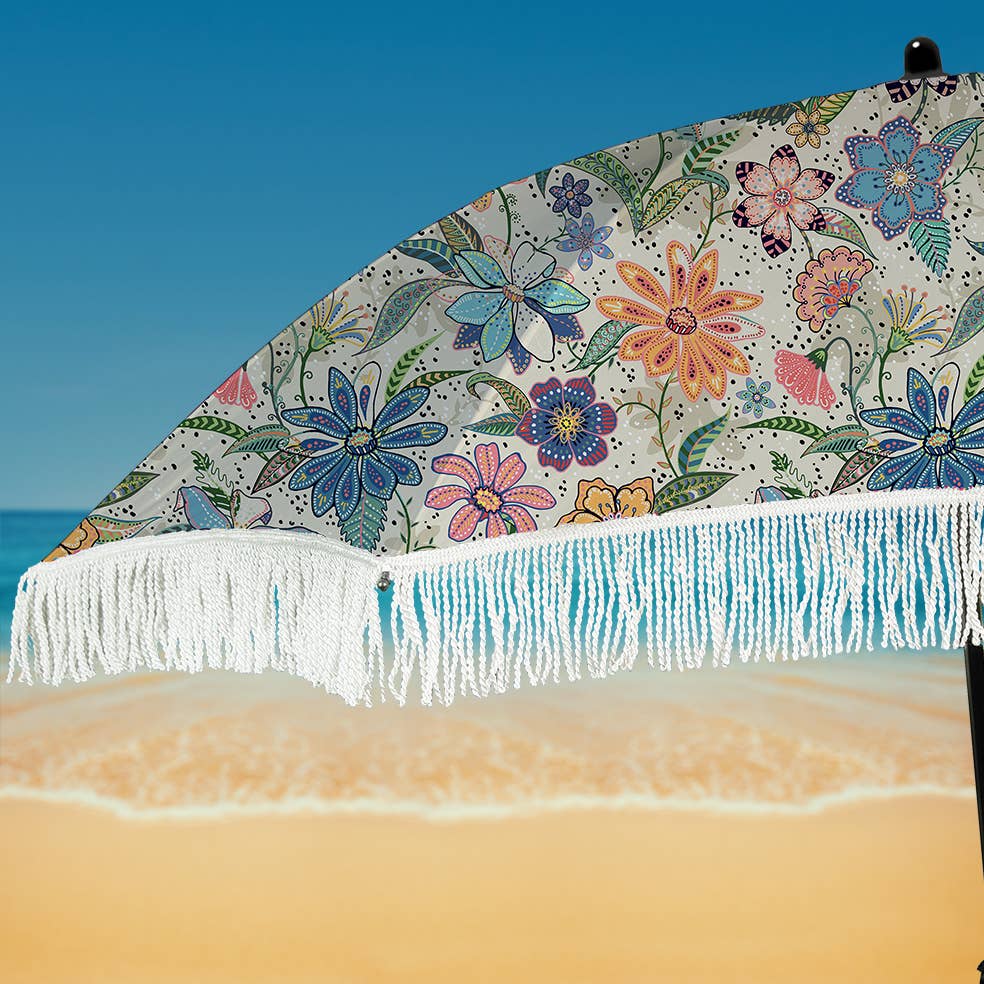 This one-of-a-kind luxury beach umbrella is 100% UV sun protective.