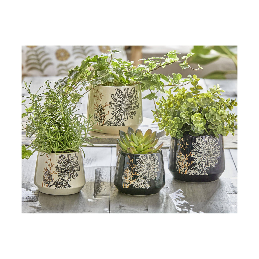 This charming planter brings a playful and natural vibe to your decor. Showcasing stoneware construction, wax resist, and hand-painted floral detail, this decorative planter gives your household foliage a beautiful upgrade.