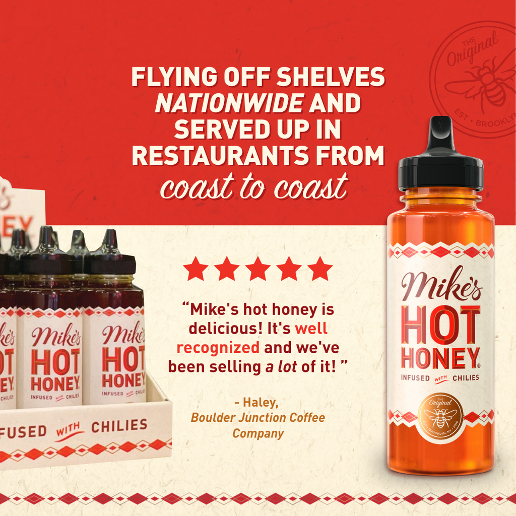 Elevate your condiment game with Mike's Hot Honey, America's favorite hot honey brand! Our 12oz squeeze bottle features the perfect balance of sweet and heat, making it an ideal addition to your kitchen or dining table. Whether you're drizzling it over pizza, chicken, cheese, or desserts, its versatile flavor profile appeals to a wide range of tastes.