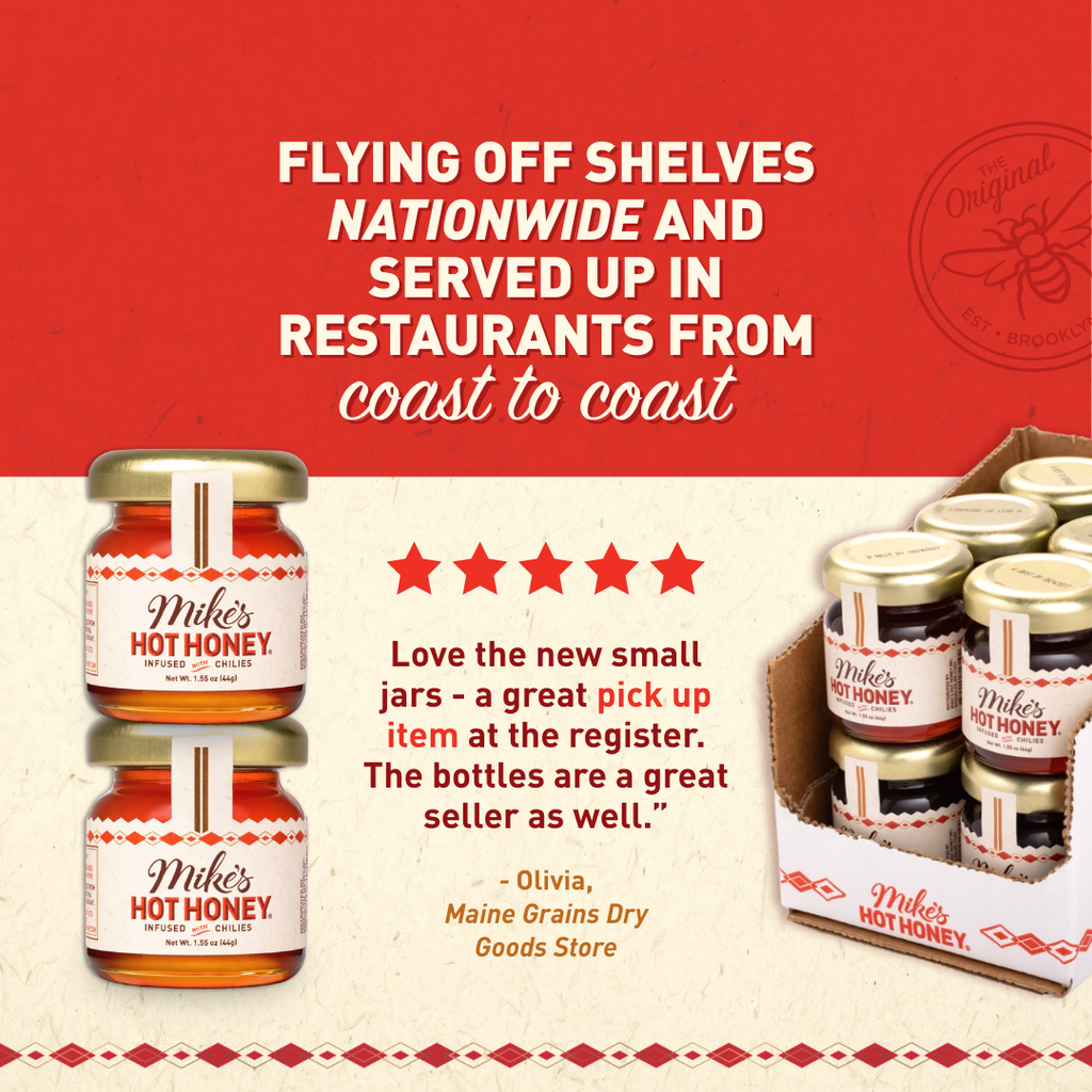 These tiny jars are not just about taste; they’re the ultimate impulse buy! Keep one on your kitchen counter, and you might find yourself reaching for it to add a delightful twist to your meals. Plus, once you experience the magic of Mike's Hot Honey, you'll likely want to stock up on our larger bottles too!