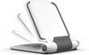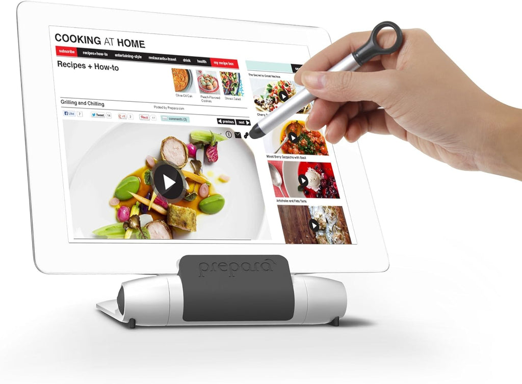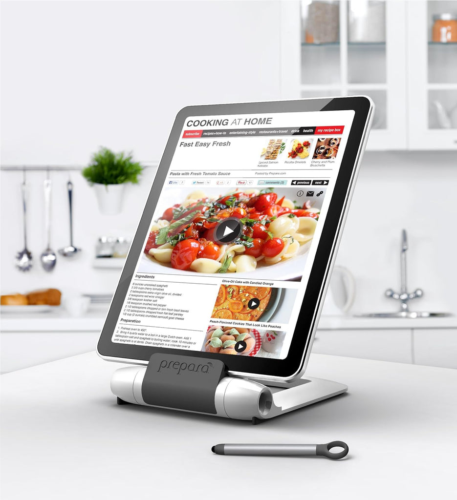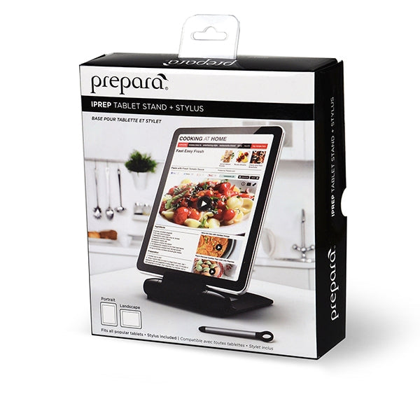 Our tablet stand fits all popular tablets in either portrait or landscape mode. A stylus is included to keep the screen clean of messy hands. A weighted base and non-slip rubber grip keep the stand planted where it belongs!