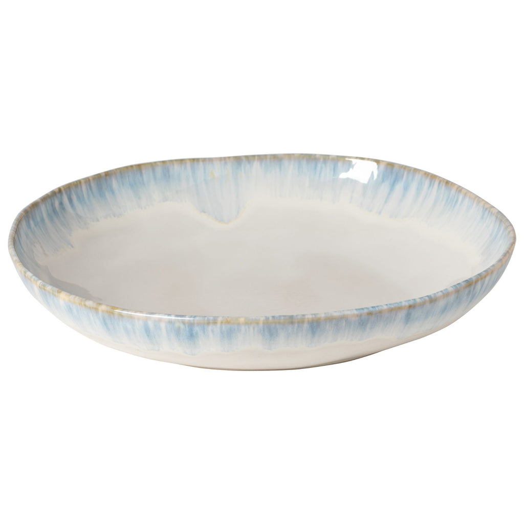 The Pasta / Serving Bowl, handcrafted in Portugal from fine stoneware, features organic shapes inspired by the Algarve Coast. Its reactive glaze in white and blue creates a unique finish, making it perfect for special occasions or daily use.