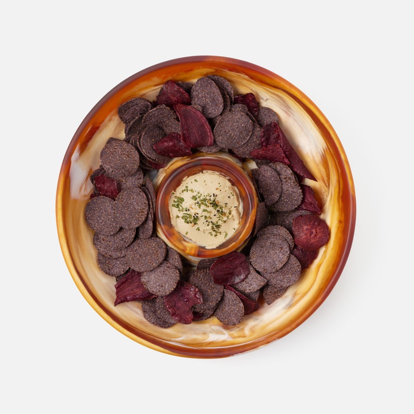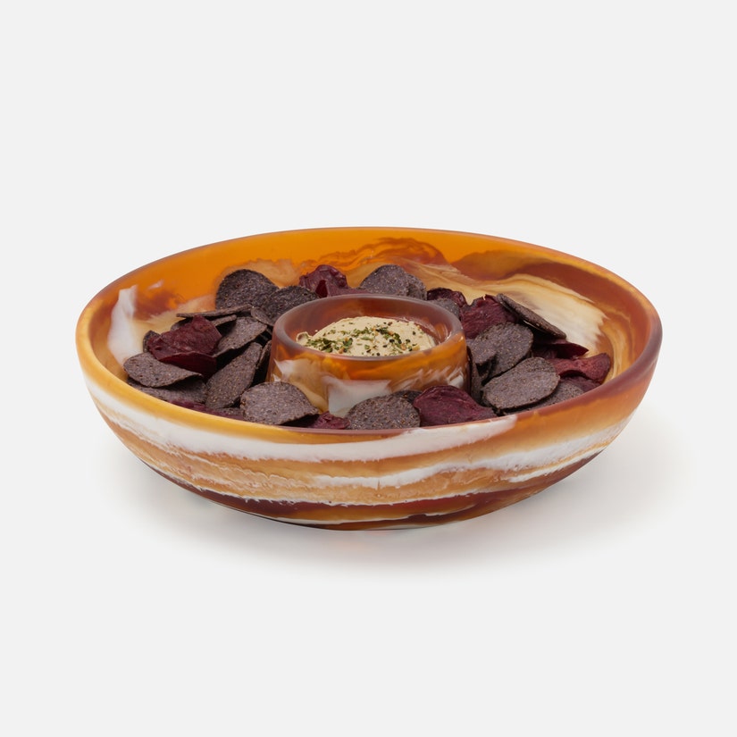 Bring joy to tabletops with Hugo---an elegant series of two-tone resin pieces in mesmerizing marbleized finishes and versatile sizes.