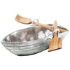 Shaped like a rowboat, this silver-plated serving bowl lends lakeside charm with its wooden oar utensils.