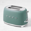 Enameled in modern matte white exclusively for us and accented with a charming ball lever knob, this retro toaster browns bread at six levels with three convenient pre-set programs. Extra-side slots accommodate different slice widths, and self-centering racks ensure even toasting. Known for its wonderfully retro refrigerators, Smeg has launched a joyfully designed retro kitchen appliance collection based on the curved and compact lines of postwar design. Smeg's nod to the past is the star of today's kitchen, incorporating all the current technological advances.
