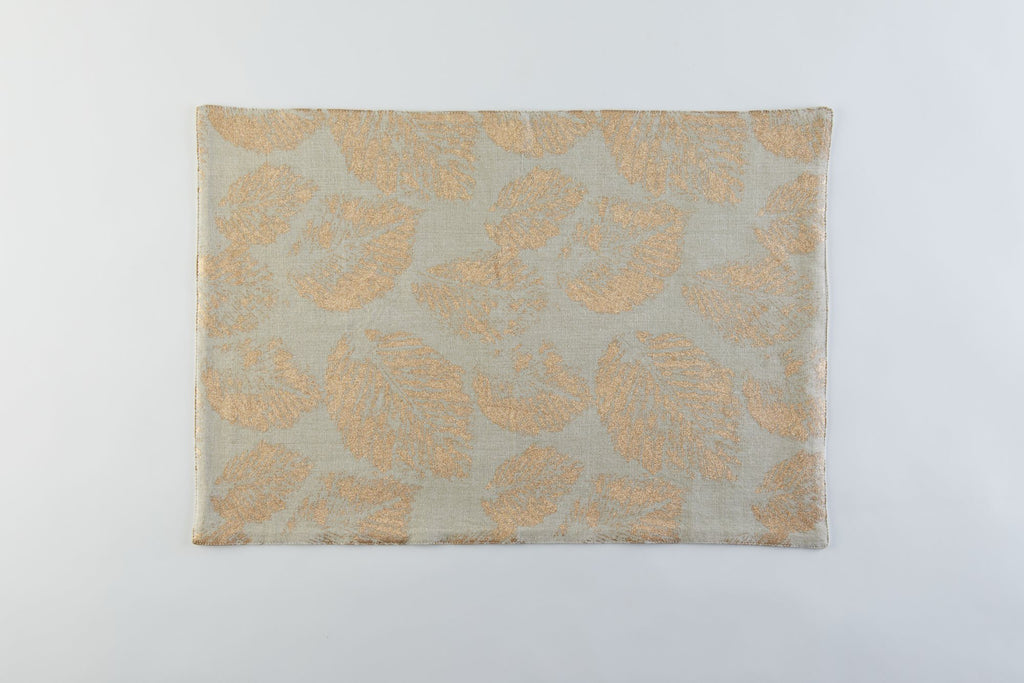 Style your table with seasonal elegance! This 100% cotton placemat is gentle to the touch and features Tableau-exclusive artwork—a shimmering pattern of gold leaves! Pair it with other items in our Glittering Gold and Holiday collections to create a festive, winter-wonderland tablescape!