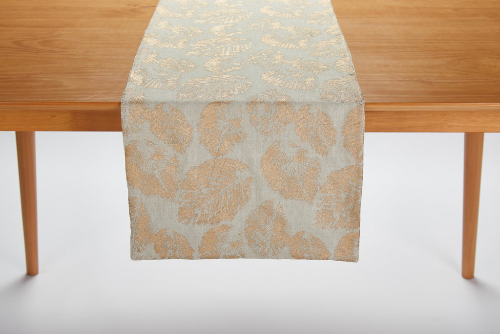 Style your table with seasonal elegance! This 100% cotton table runner is gentle to the touch and features Tableau-exclusive artwork—a shimmering pattern of gold leaves! Pair it with other items in our Glittering Gold and Holiday collections to create a festive, winter-wonderland tablescape!