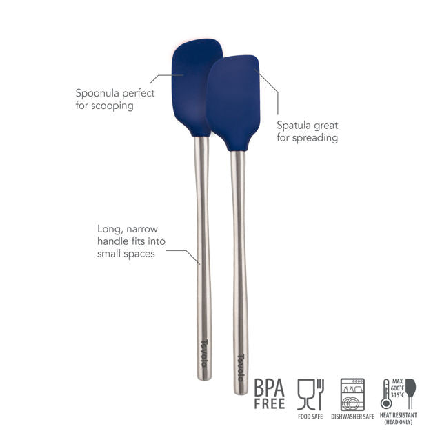 • Form Meets Function: Arriving in a pair, this mini spatula and spoonula are able to tackle numerous kitchen tasks.