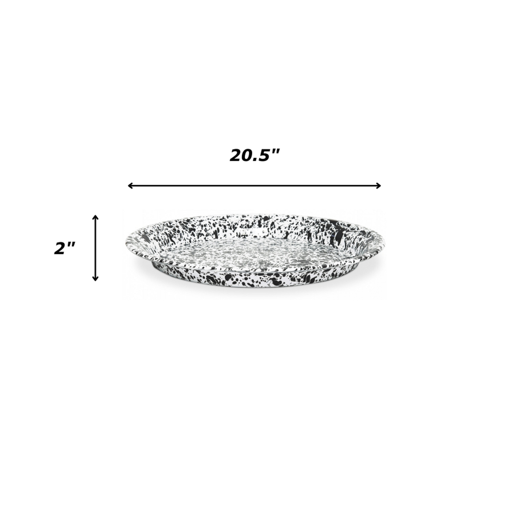 Our enamelware Large Round Tray is a functional and durable addition to your serve ware collection. The classic Splatter pattern is perfect to use during the holidays and special occasions. Guaranteed to provide an array of eatables to all your hungry guests.