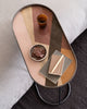 Overlapping shapes and colours create the tranquil rhythm in the Composed Angles collection. The layered screen-printed glass design features translucent and opaque layers that define the next, creating an unexpected harmony. Designed by Dawn Sweitzer, each tray fits perfectly on a tray table or rests nicely on a tabletop or shelf.