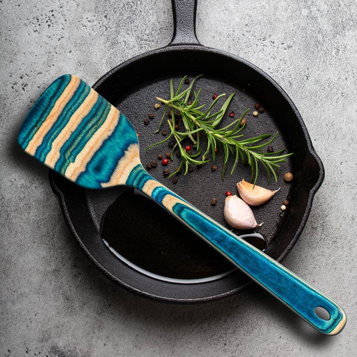 Add a Mediterranean flair to your kitchen collection with the Baltique® Mykonos Wooden Spatula by Totally Bamboo. Crafted from layered birch wood and colored with safe, food-friendly dyes, this spatula showcases a beautiful mix of calming blue and natural wood hues inspired by the Greek island’s peaceful charm. Measuring 12.5 inches, it’s ideal for flipping, folding, scraping, and serving—perfect for pancakes, sautéed vegetables, or burgers—while protecting your non-stick cookware.