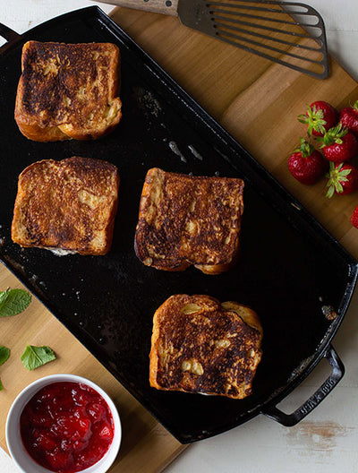 Experience the difference of triple-seasoned™, lightweight cast iron—inspired by our original Blacklock Foundry. Cast iron provides superior heat retention and durability, so you get great results, no matter what’s on your menu. The naturally nontoxic, triple-seasoned surface feels like cooking on vintage cast iron. At home on your stovetop, grill, or over a campfire, this griddle has any and every recipe covered. Revolutionize the way you cook with our most advanced cookware yet.
