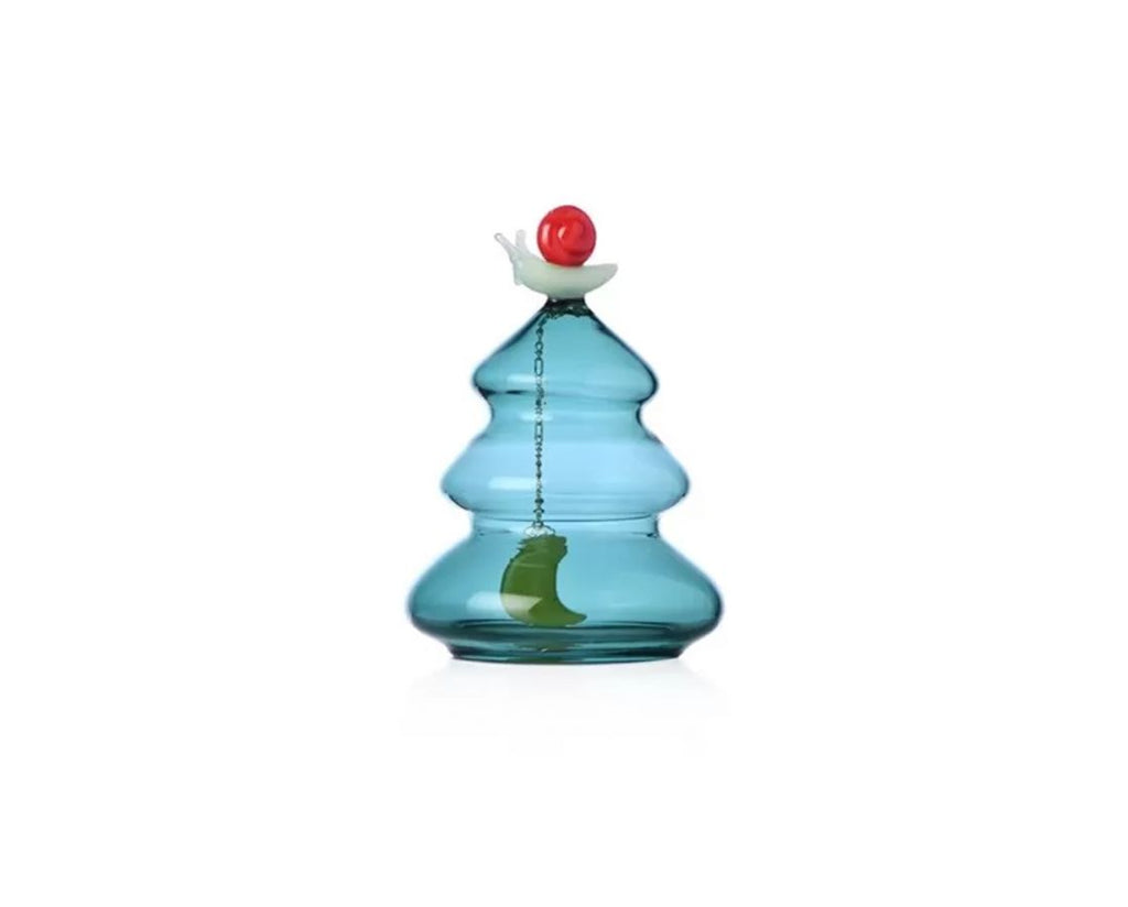 In this version, the tree takes the form of a borosilicate glass bell, carefully reproducing all its details. The stylized branches and elegant appearance give this object an enchanted atmosphere, perfect for enriching Christmas decorations. At the top of the bell, a small snail rests sympathetically, adding a playful and original touch to the design. This curious detail, far from the classic decorations, invokes slowness and reflection, values that invite one to calmly enjoy the holiday season. The bell pendulum, on the other hand, is a delicate moon, a symbol of dreams and mystery, which moves gently when the bell is rung. An ideal element to embellish Christmas decorations with style and uniqueness.
