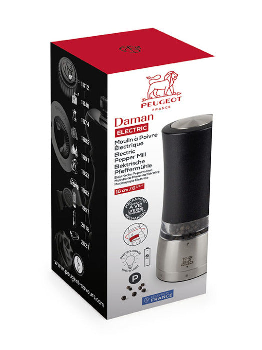 This 16cm u'Select electric pepper mill features a beautiful iridescent black finish, which pairs perfectly with its stainless steel base. Practical and stylish, this mill is easy to use and adjust; simply turn the knob on top clockwise for a finer or coarser grind. Its modern, compact design blends seamlessly into any kitchen.