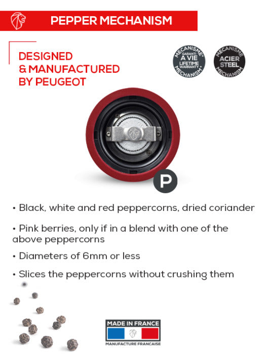 - For grinding whole black, white, green and red pepper, pink peppercorns (no more than 15% in a pepper blend) and coriander seeds